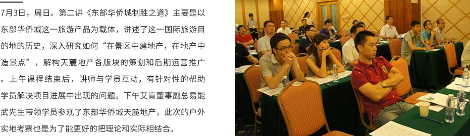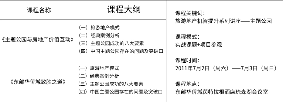 本课程为期两天,是亚博IM电竞咨询机构推出的旅游地产实战系列讲座的第一期,聘请了来自旅游地产领域的实战大师,采用“授课+实地考察”的学习模式,侧重实战经验与旅游产品紧密结合,让学员全方位、多角度、立体化把握旅游地产实战的本质。