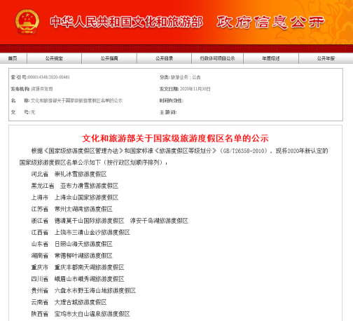 文化和旅游部关于国家级旅游度假区名单的公示